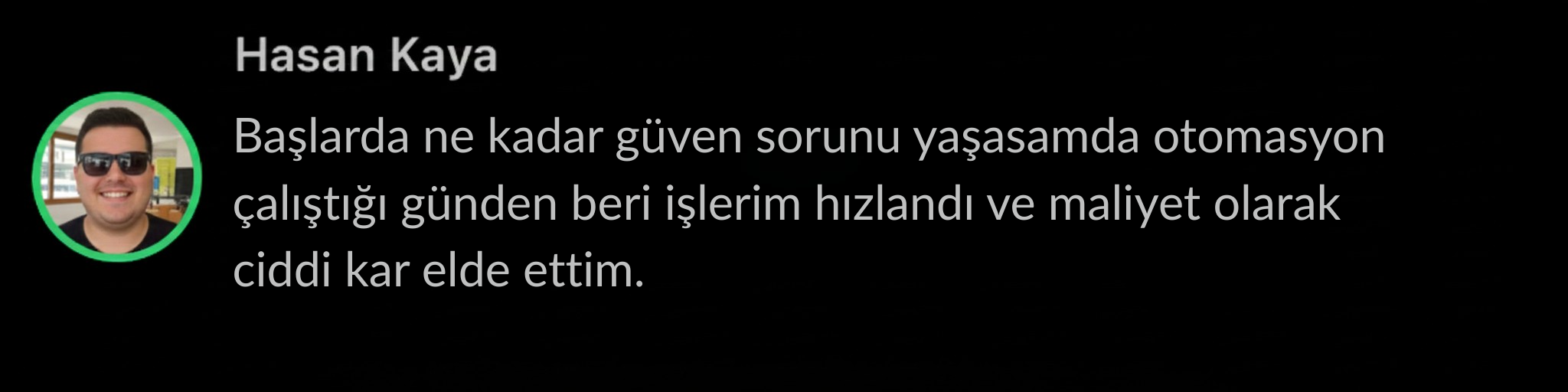 Otomasyon, belirli görevlerde bir çalışanın yapabileceği işin çok daha fazlasını; daha hızlı, hatasız ve 7/24 kesintisiz şekilde gerçekleştirir. Üstelik molaya, mesaiye, izin günlerine veya ekstra maliyetlere ihtiyaç duymaz. Rutin işler otomatikleştiğinde hem zaman kaybı hem de personel giderleri büyük ölçüde azalır. Ekibiniz angarya işlerle uğraşmak yerine tamamen büyümeye, satışa ve stratejik görevlere odaklanır. Otomasyon, çalışanların yerini almak için değil; iş yükünü hafifletip işletmenizi daha verimli ve kârlı hale getirmek için vardır. Bu yüzden çoğu işletme artık kritik süreçlerinde otomasyon kullanmayı tercih ediyor.