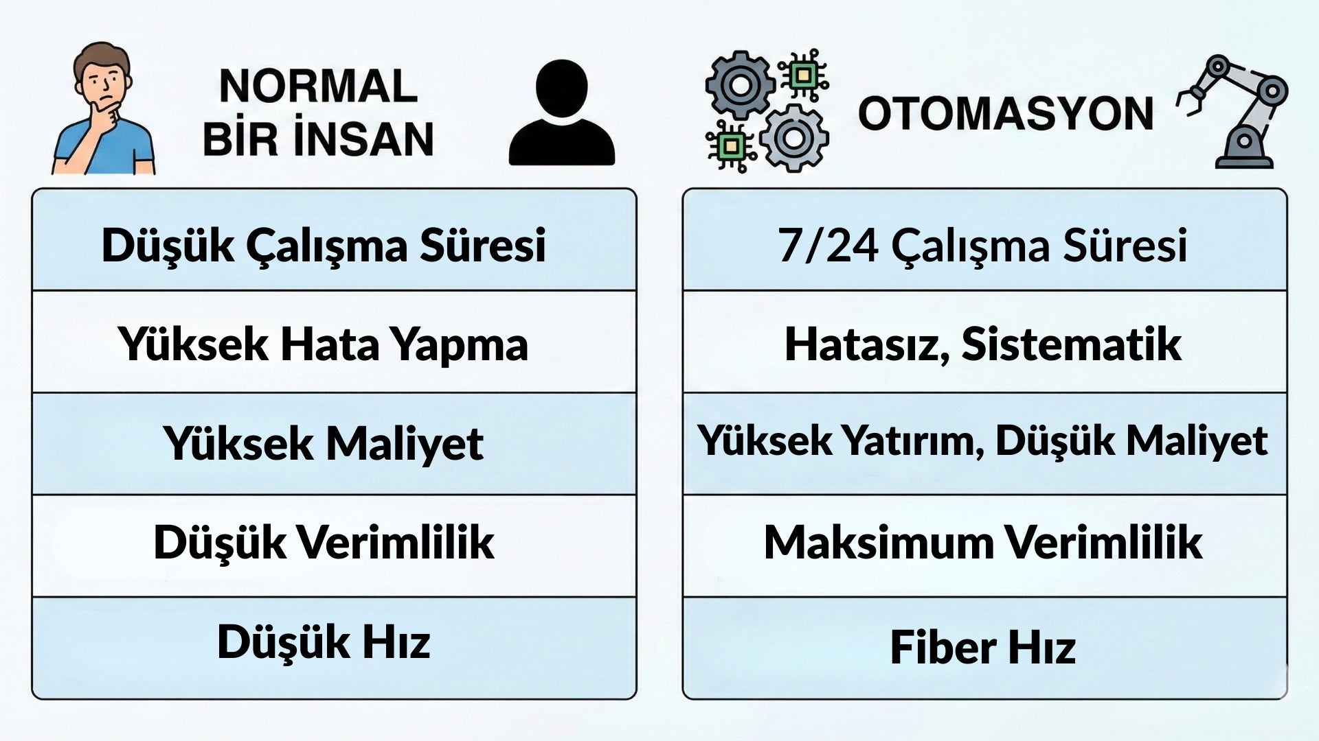 Rutin görevleri otomatikleştirerek zaman ve maliyetten tasarruf edin. Hatasız, hızlı ve kesintisiz işleyen sistemlerle işletmenizi bir adım öne taşıyın.